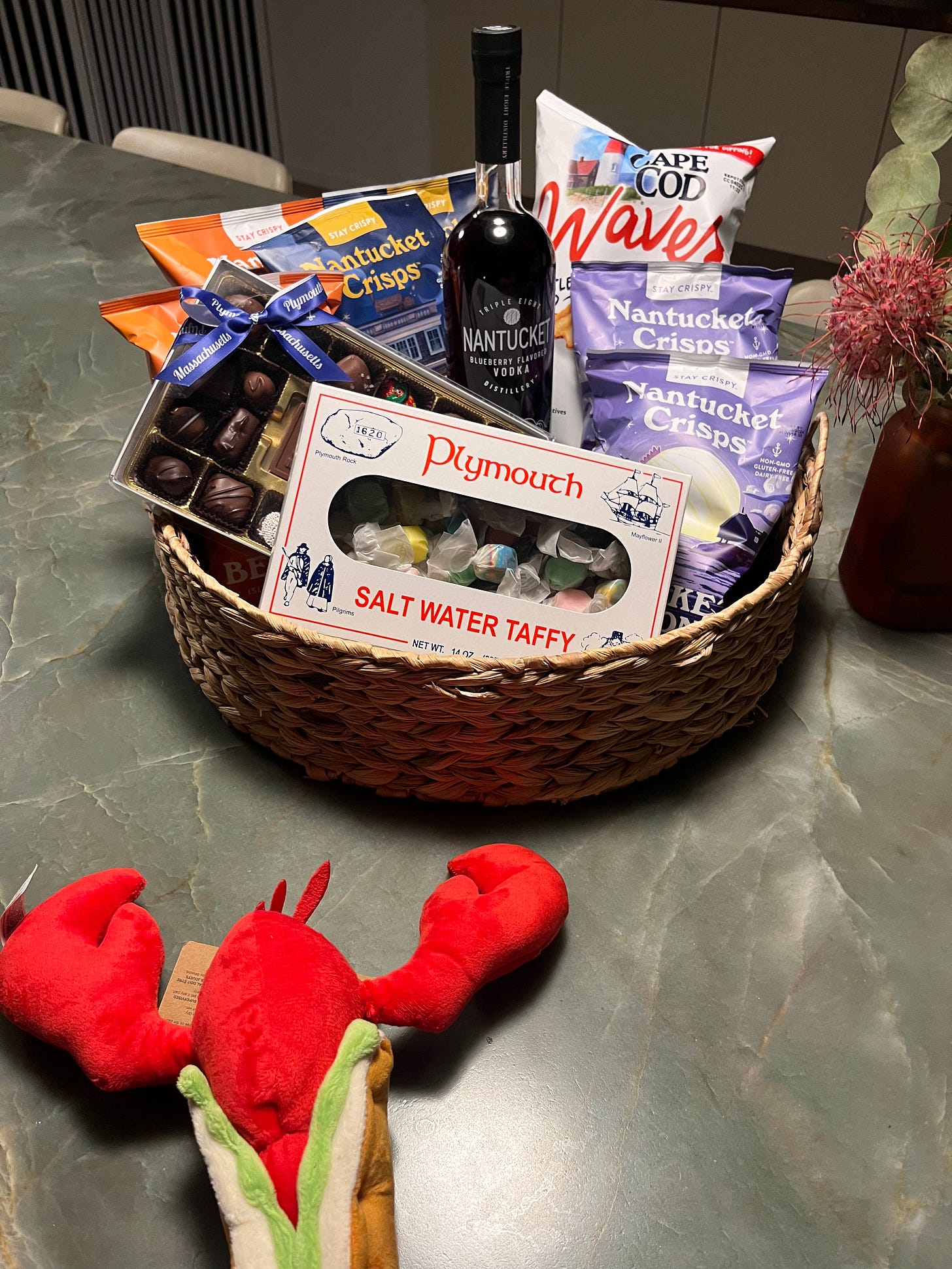 When we got in at 2:30 AM (after a nightmarish several hours stuck in traffic in Connecticut), Emilyās basket of regional treats made it all worth it.