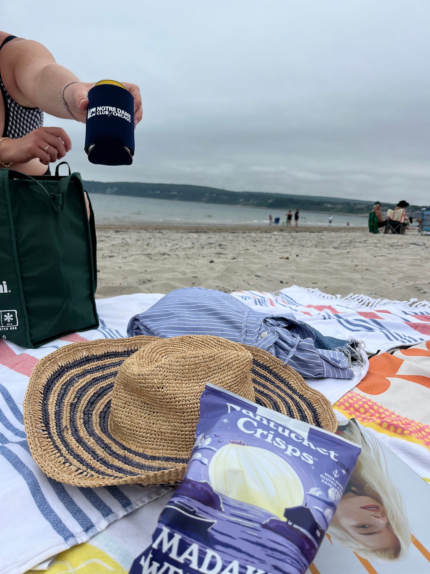 I saved Elin Hilderbrandās final novel set in Nantucket, the newly published Swan Song, for our Massachusetts beach day. Emily handed me a crisp beer from Cisco Brewers on Nantucket and a bag of Nantucket Crispsā the Madaket Sweet Onion flavor, exquisite. I read my Kindle while the waves crashed and I felt positively bubbly.