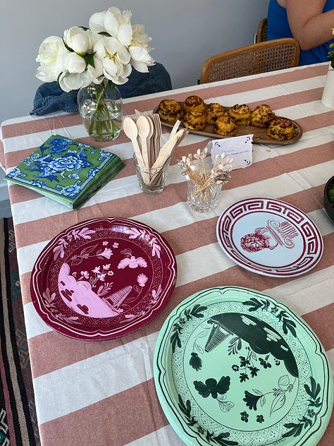 I got the cutest Ginori-inspired paper plates for a party we hosted last week— and I got so many compliments on them! The small business that sells them is called Pavilion Paper. I also sprung for these great outdoor-safe cups from Anthro and a fun new tablecloth.
