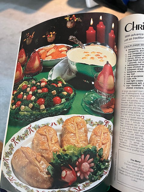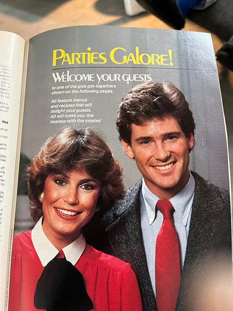 I visited my grandparents a week ago and treated their house as though it was mine, as many grandchildren are wont to do-- I pulled down a bunch of old cookbooks and magazines and had a fabulous time with this special edition glossy covered mag on holiday entertaining, published in 1982. I saved a few recipes I'll be trying this week!