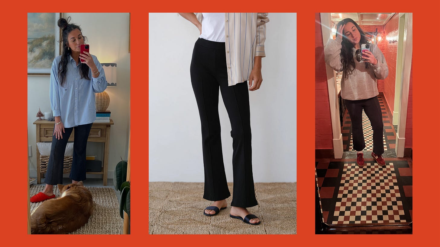 Donni Kick Flares (Tall & Cropped) // I loved these so much in 2024 and 2025 that I have two pairs. I am less excited about this silhouette in 2026, but quality-wise, they remain a great investment. They’re a really thick, nice weave of cotton. (I’m curious how the sweater pair is too.) While I originally bought the ankle length (Regular) pair, pictured above on the left and right, I ended up buying the tall, pictured above in the center— I have long legs, and I thought I’d wear them more in the Winter. I regret it, I think the shape of the Regular keeps them from looking like glorified yoga pants. Oh well!