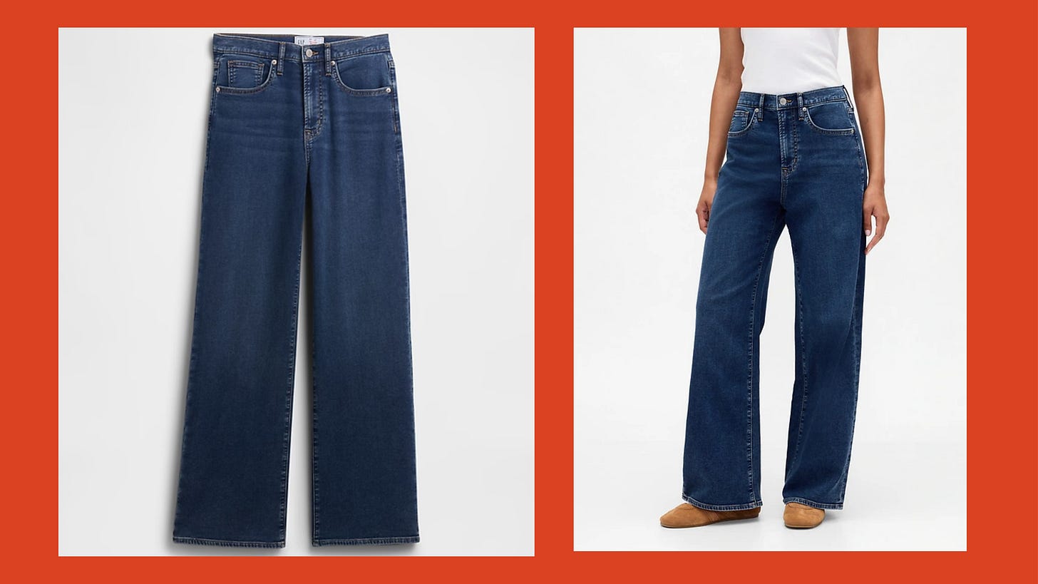 Sizing note: These are true to size, but they’re a totally different cut than the Gap pair I modeled above— they’re a higher waist. That’s not my favorite since I have a short torso, but I know a lot of longer-torso’d people who prefer it!