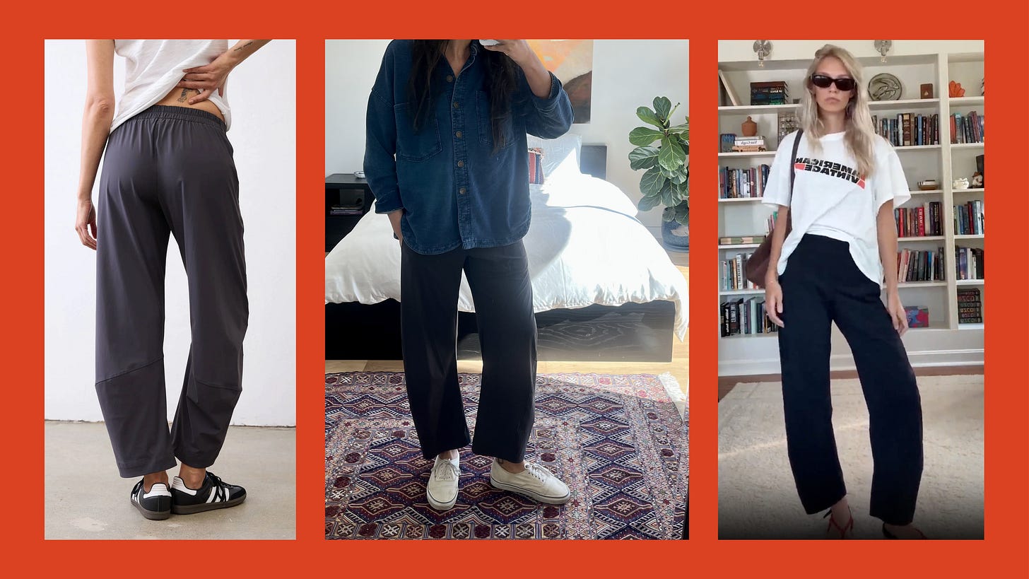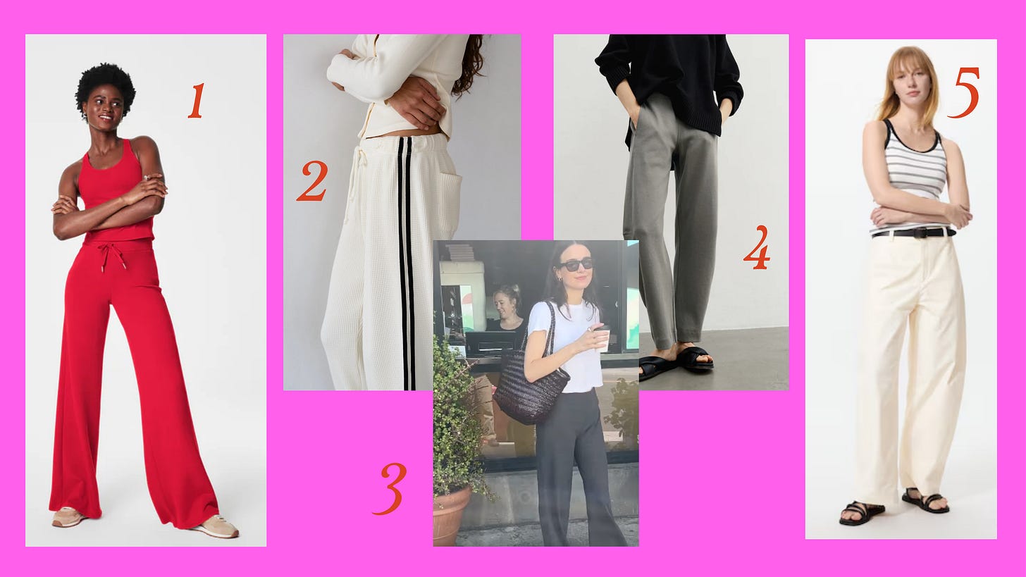 I write often about the hunt for the perfect pair of WFH pants (perhaps there is a better phrase, for which I turn to you for suggestions, dear readers) and this time I tried on as many as I could. Today I am sharing fit notes and photos wherever I can, and sharing a few reader recs that have gotten some hype. LFG!!