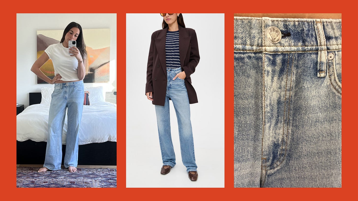 Sizing note: I took my usual size and they’re a bit long, but I think that works. I’m told if you accidentally put them in the dryer (they’re air dry only) they will get shorter. My mom sized down and loves the fit— you could size down for a closer fit for sure, on myself I like my typical size since it mirrors how I’d want this cut of jean to fit me anyways.