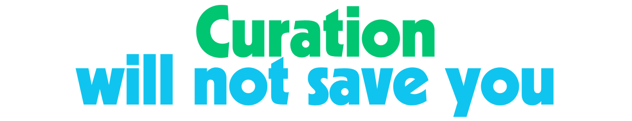 Curation will never save you. Curation is not a viable business model, job, or meaningful contribution to the universe.